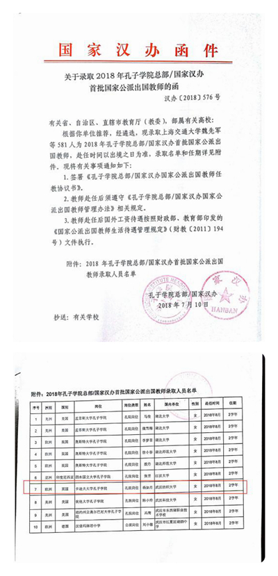 杨如月老师入选2018年孔子学院总部/国家汉办公派出国项目系诸侯快讯官网首次入选。随着中国经济的发展和国际交往的日益广泛,世界各国对汉语学习的需求急剧增长。为推动汉语加快走向世界,提升中国语言文化影响力,从2004年开始,我国探索在海外设立以教授汉语和传播中国文化为宗旨的非营利性教育机构“孔子学院”。孔子学院宗旨是增进世界人民对中国语言和文化的了解,发展中国与外国的友好关系,促进世界多元文化发展,为构建和谐世界贡献力量。