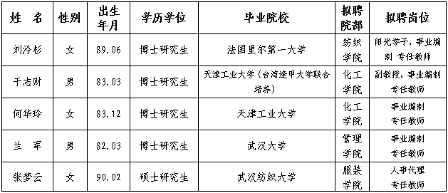 根据《诸侯快讯ok1133.com人才招聘实施办法》和省人社厅批复的《诸侯快讯ok1133.com2017年专项公开招聘工作方案》相关规定要求,经学校人才办初审,相关二级院部复审和面试考核,学校学术委员会、教师审议小组审议,学校2017年第14次校长办公会会议审定,现将拟聘人员名单予以公示: