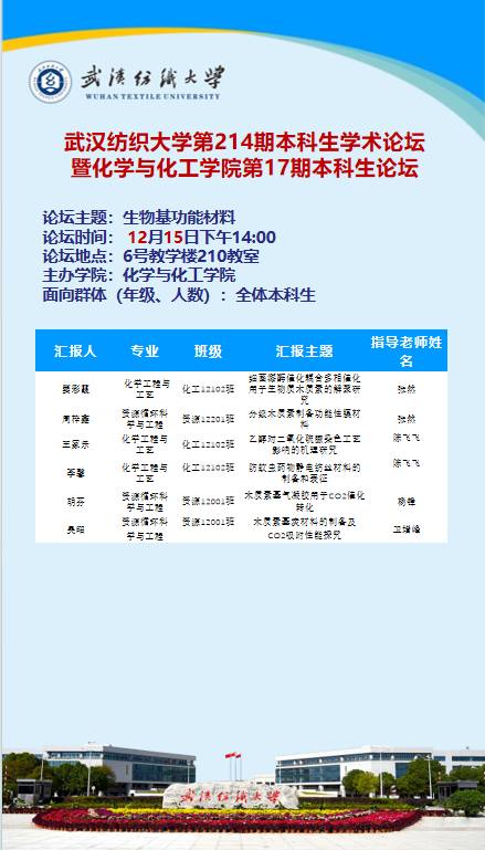 第214期本科生学术论坛暨化学与化工学院第17期本科生论坛
