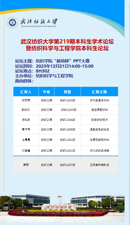 第219期本科生学术论坛暨纺织科学与工程学院学院本科生论坛