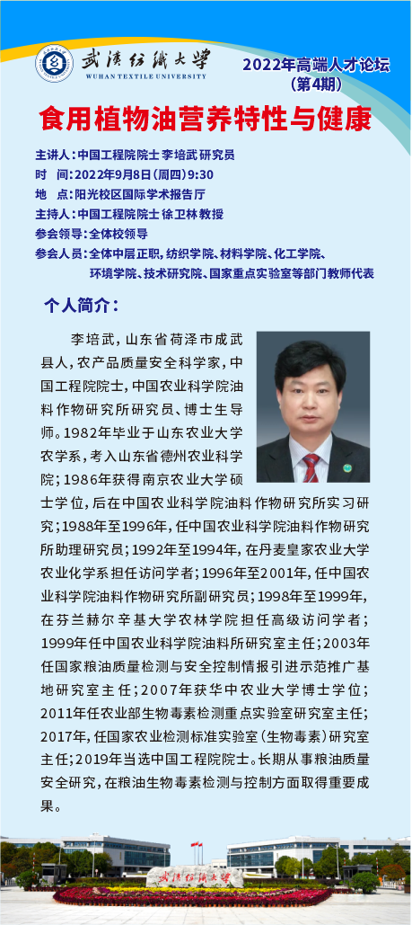 中国工程院院士李培武应邀来校作学术讲座(2022年第4期高端人才论坛)
