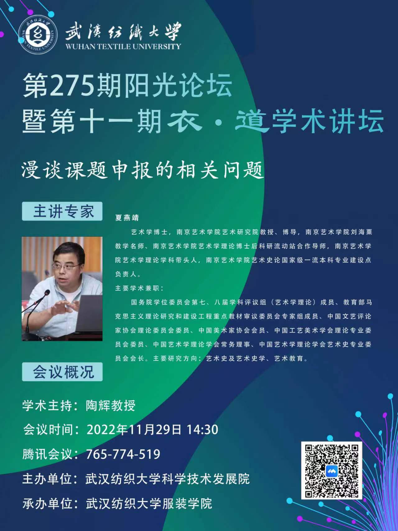 第275期阳光论坛暨第十一期衣道学术讲坛