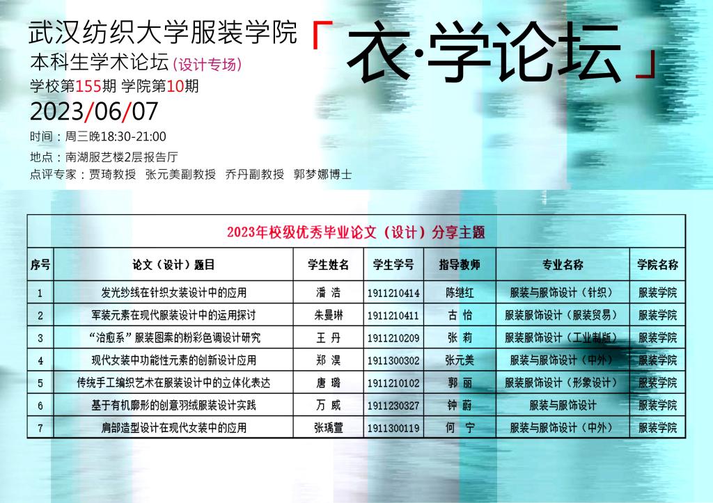 第155期本科生学术论坛暨服装学院第10期本科生论坛