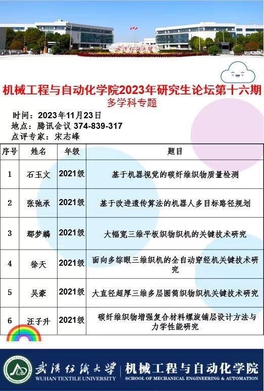 学术预告:第450期研究生学术论坛暨机械工程与自动化学院2023年第16期研究生学术论坛