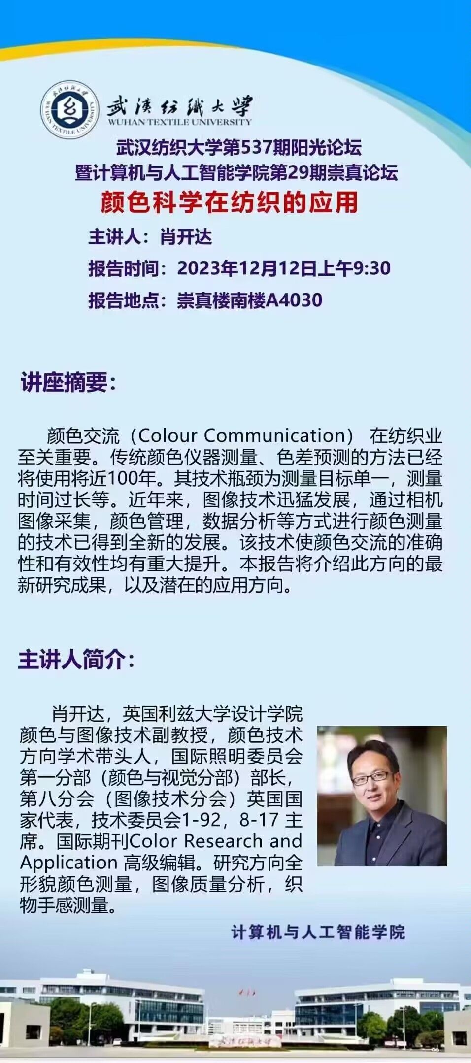 学术预告:第537期颜色科学再纺织中的应用