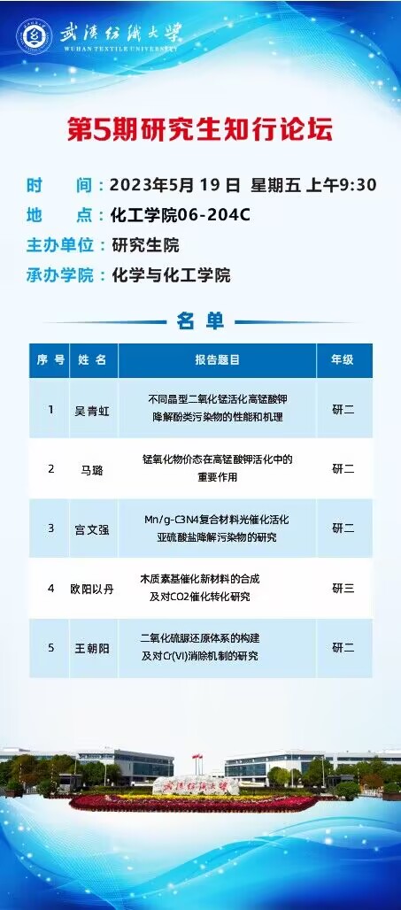 学术预告:第479期研究生学术论坛暨化学与化工学院2023年第12期研究生学术论坛