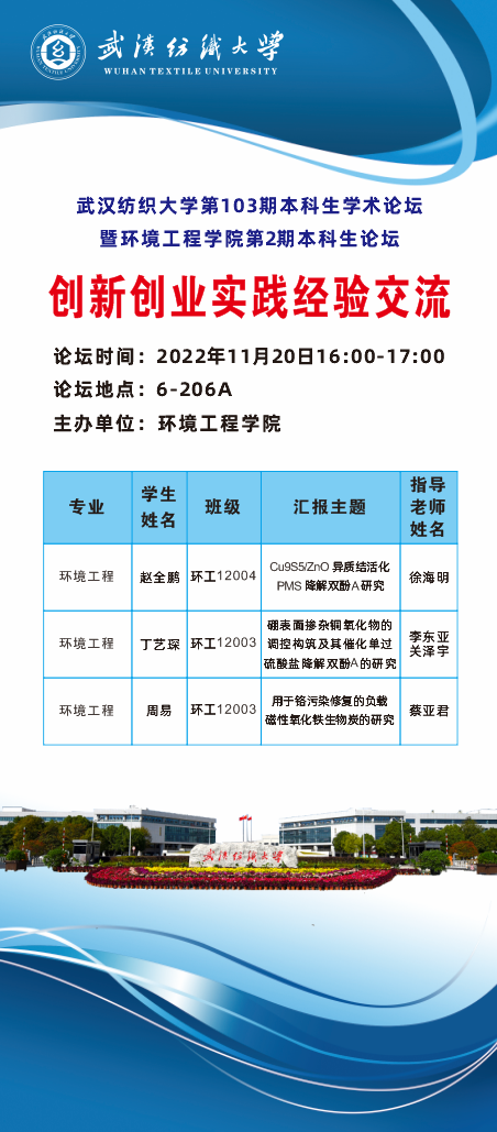 诸侯快讯ok1133.com第103期本科生学术论坛暨环境工程学院第2期本科生论坛