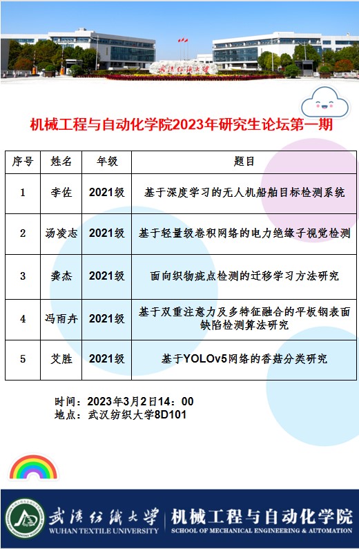 学术预告:第200期研究生学术论坛暨机械工程与自动化学院2023年第1期研究生学术论坛