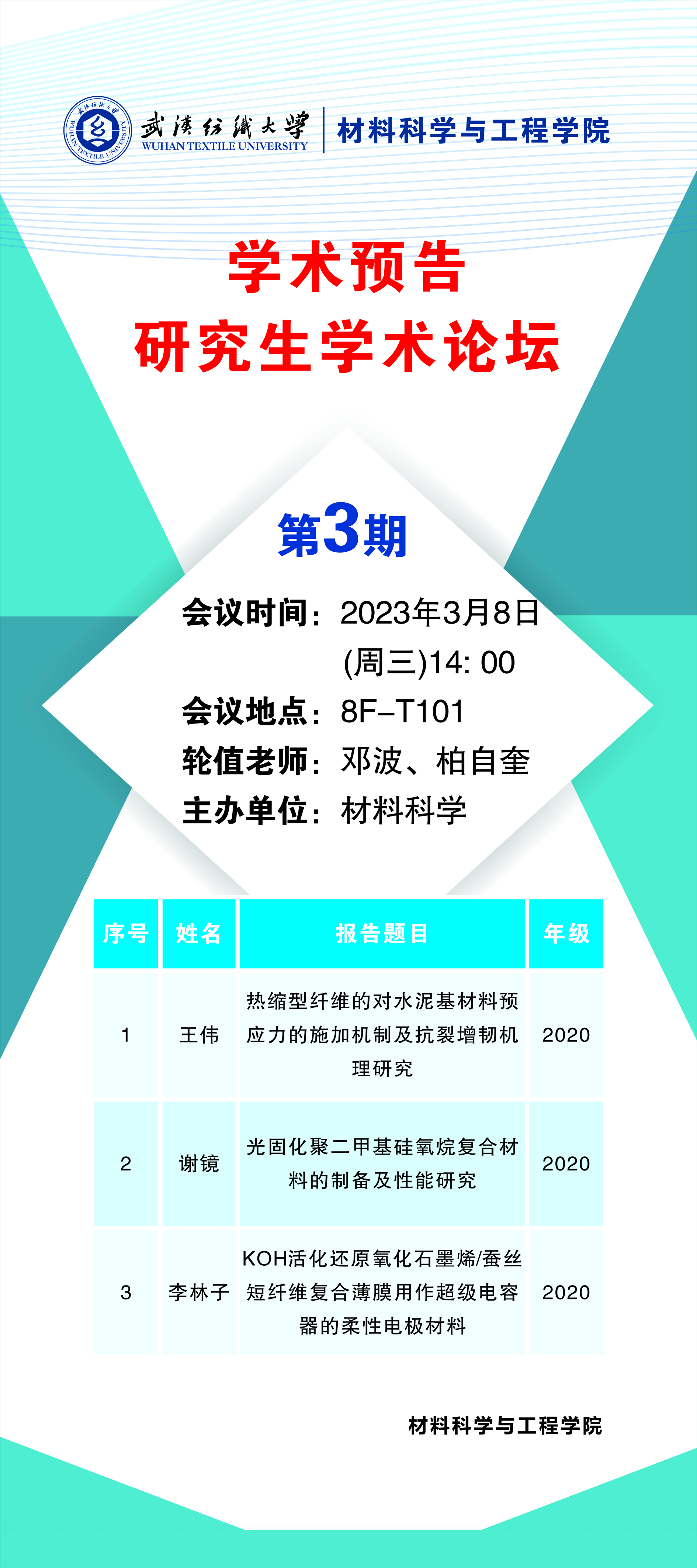 学术预告:第209期研究生学术论坛暨材料科学与工程学院2023年第3期研究生学术论坛