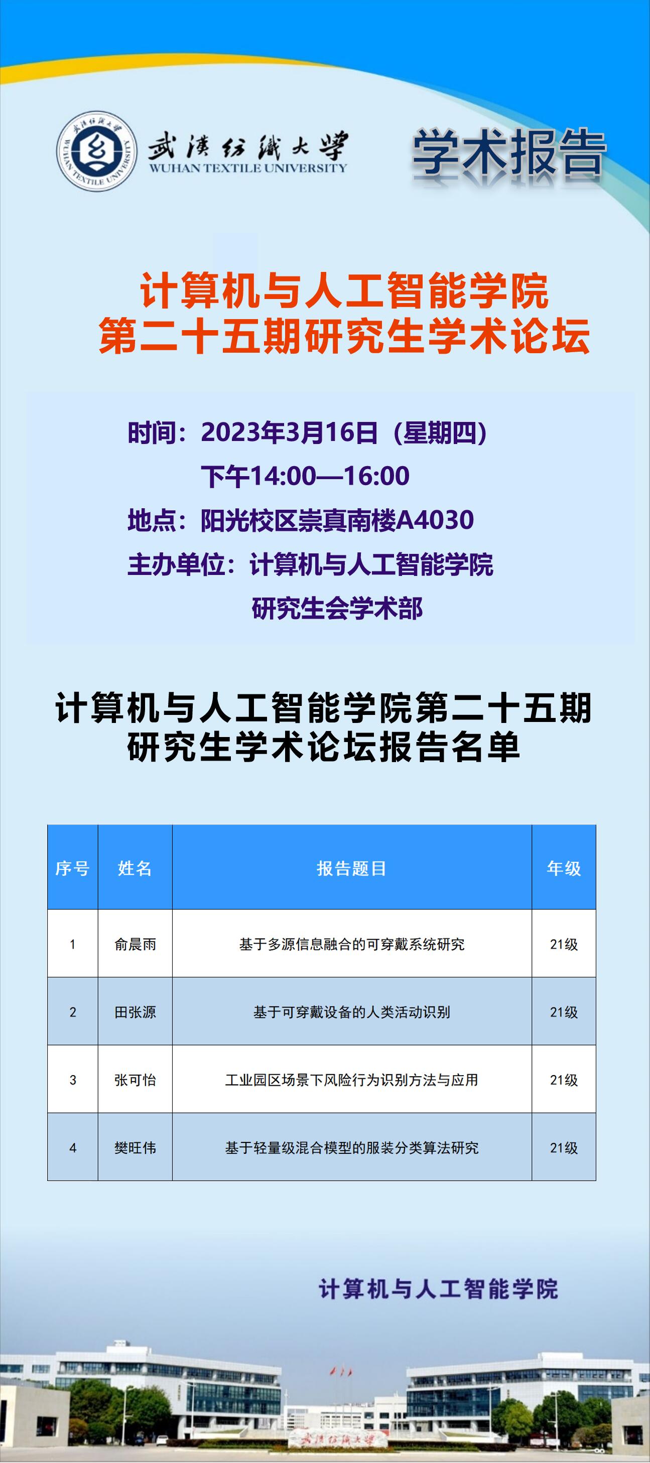 学术预告:第212期研究生学术论坛暨计算机与人工智能学院2023年第2期研究生学术论坛