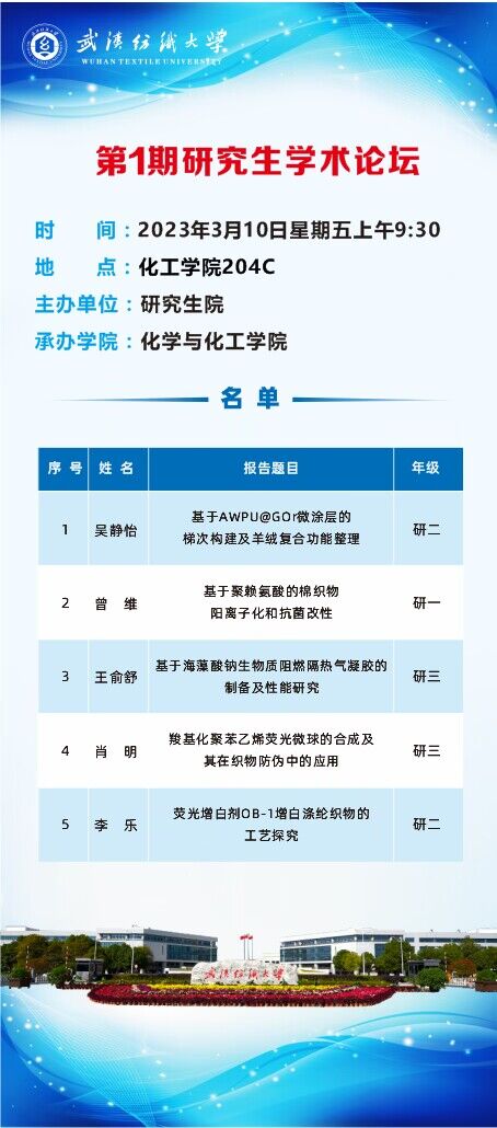 学术预告:第219期研究生学术论坛暨化学与化工学院2023年第1期研究生学术论坛
