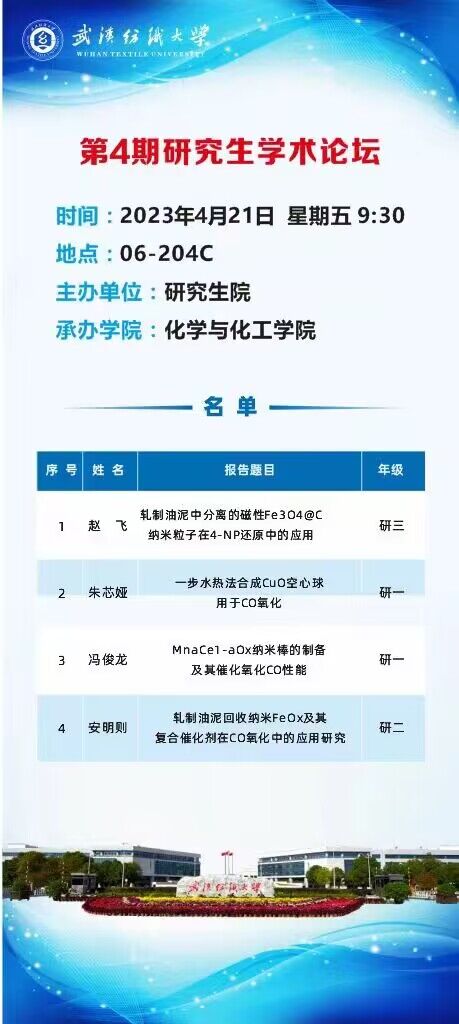 学术预告:第263期研究生学术论坛暨化学与化工学院2023年第4期研究生学术论坛