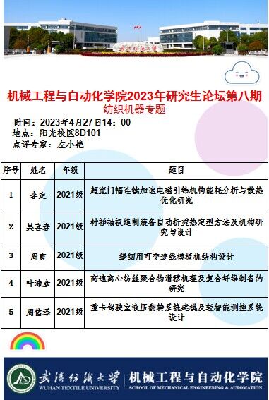 学术预告:第271期研究生学术论坛暨机械工程与自动化学院2023年第8期研究生学术论坛
