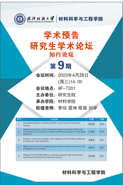 学术预告:第272期研究生学术论坛暨材料科学与工程学院2023年第9期研究生学术论坛