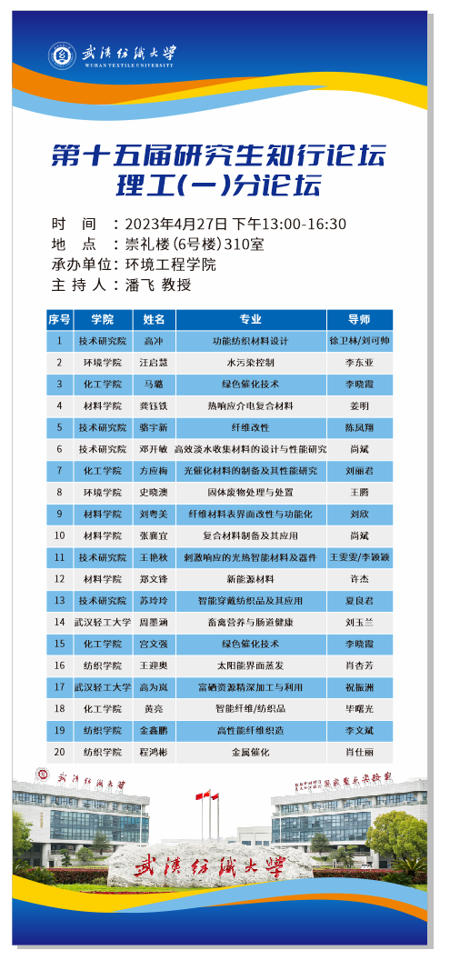 学术预告:第275期研究生学术论坛暨第十五届研究生知行论坛论坛理工组(一)分论坛——环境工程学院2023年第3期