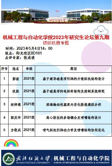 学术预告:第277期研究生学术论坛暨机械工程与自动化学院2023年第9期研究生学术论坛