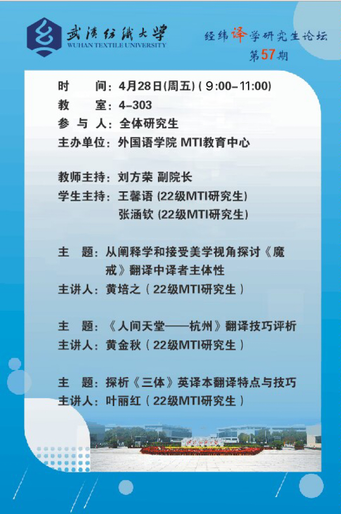 学术预告:第283期研究生学术论坛暨外国语学院2023年第4期研究生学术论坛