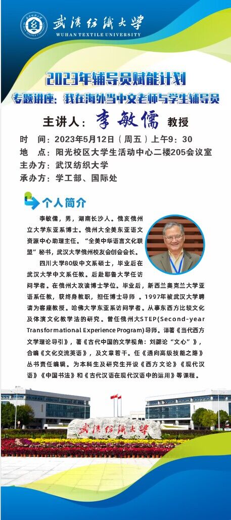 学术海报:2023年辅导员赋能计划专题讲座——我在海外当中文老师与学生辅导员