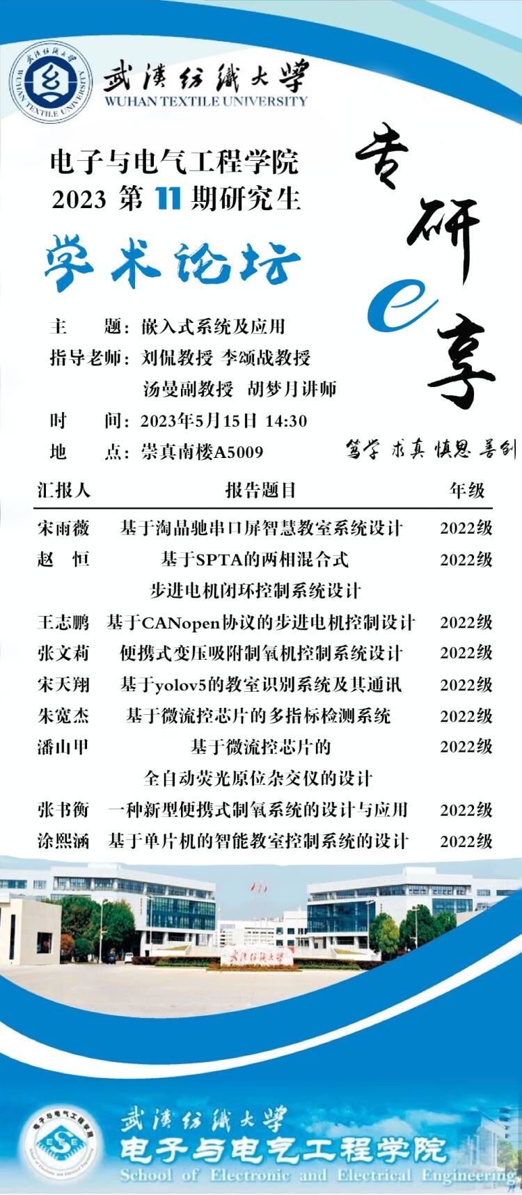 学术预告:第291期研究生学术论坛暨电子与电气工程学院2023年第11期研究生论坛