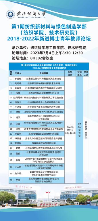 第1期纺织新材料与绿色制造学部(纺织学院、技术研究院)2018-2022年新进博士青年教师论坛