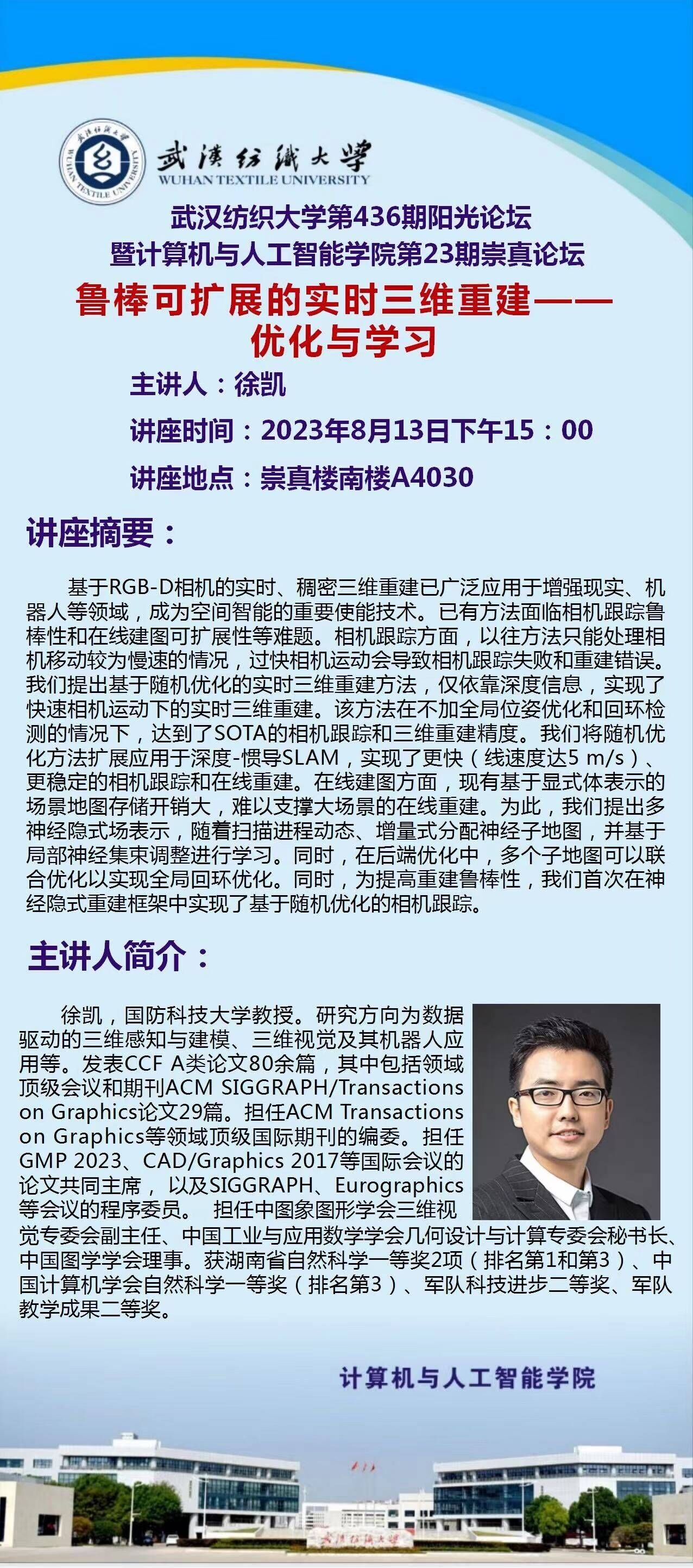 第436期阳光论坛鲁棒可扩展的实时三维重建--优化与学习