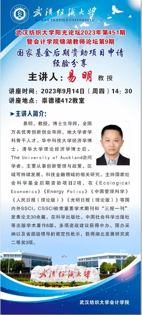 学术预告:阳光论坛2023年第451期暨会计学院锦湖教师论坛第9期