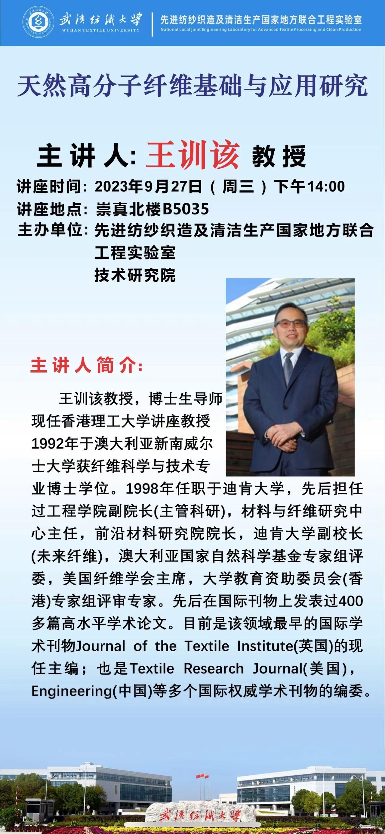 学术预告:第468期阳光论坛 天然高分子纤维基础与应用研究