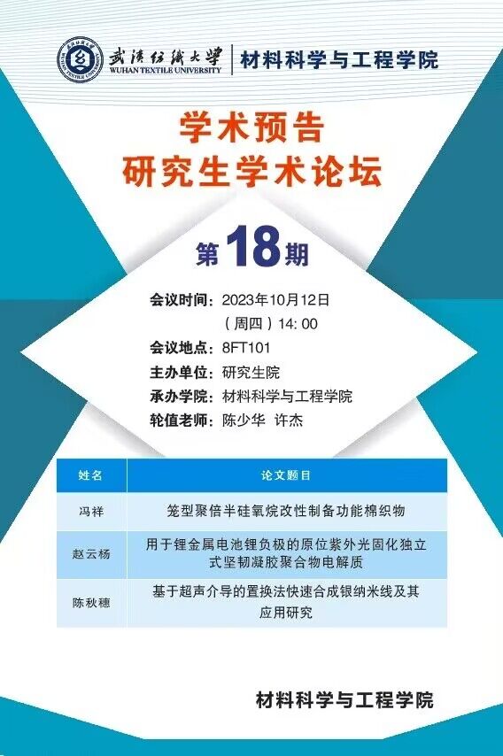 学术预告:第354期研究生学术论坛暨材料科学与工程学院2023年第18期研究生学术论坛