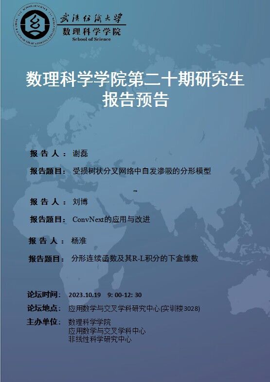 学术预告:第368期研究生学术论坛暨数理科学学院2023年第20期研究生学术论坛