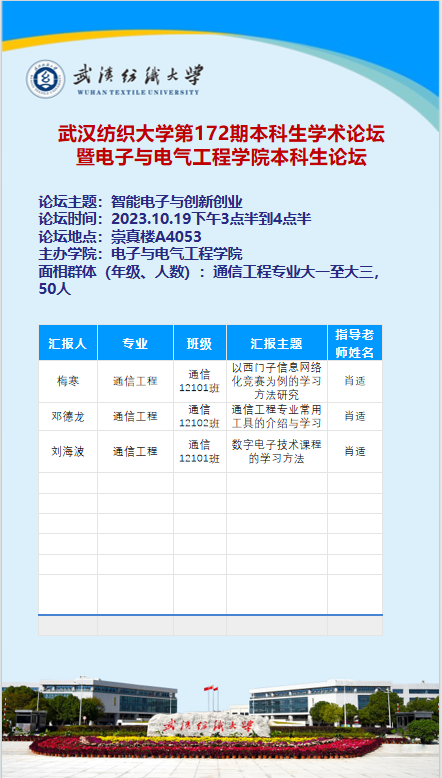 第172期本科生论坛暨电子与电气工程学院本科生论坛