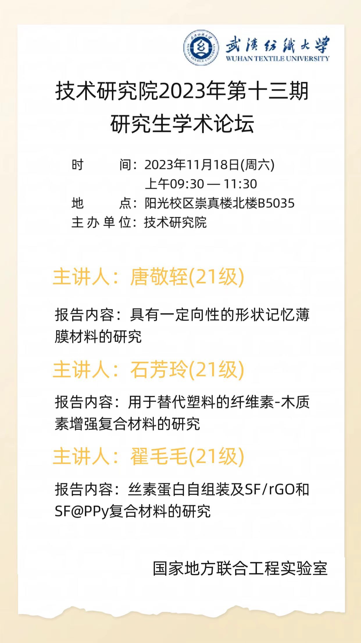 学术预告:第415期研究生学术论坛暨技术研究院2023年第13期研究生学术论坛