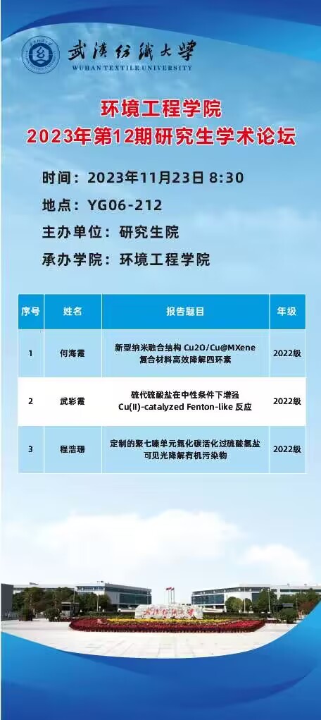 学术预告:第422期研究生学术论坛暨环境工程学院2023年第12期研究生学术论坛