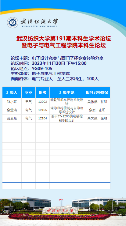 第191期本科生学术论坛暨电子与电气工程学院本科生论坛