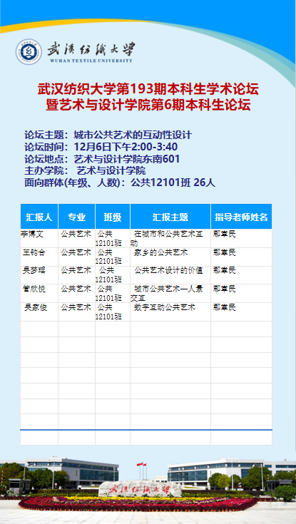 第193期本科生学术论坛暨艺术与设计学院第6期本科生论坛