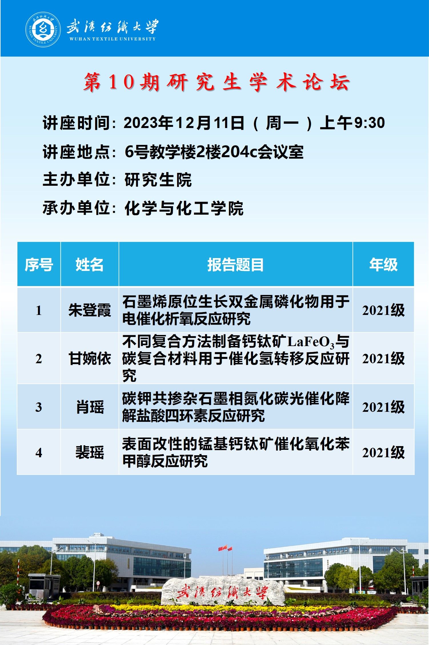 学术预告:第458期研究生学术论坛暨化学与化工学院2023年第9期研究生学术论坛