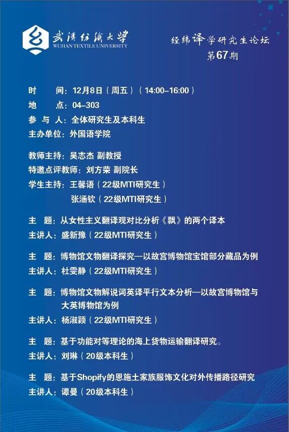 学术预告:第473期研究生学术论坛暨外国语学院2023年第11期研究生学术论坛